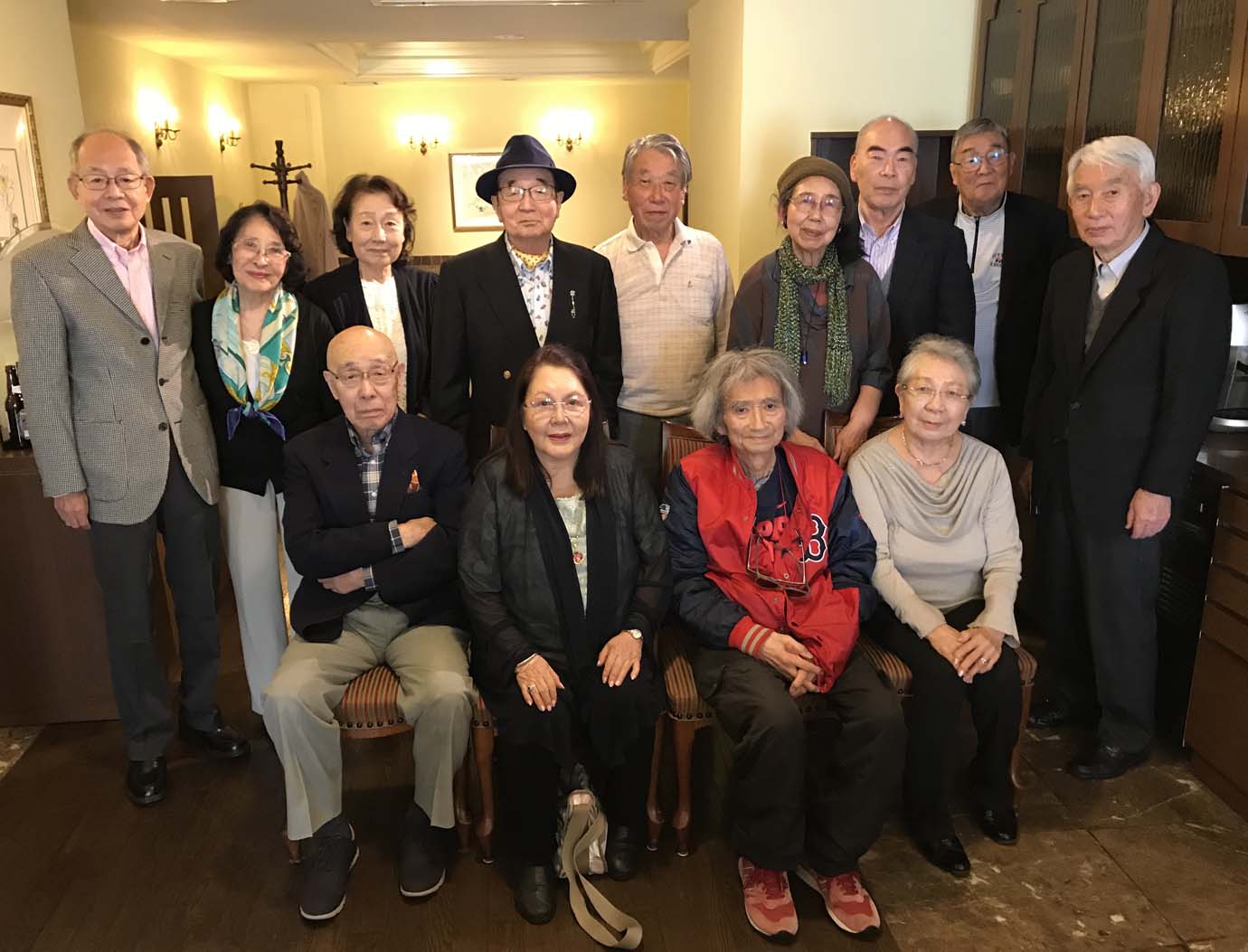 【開催報告】昭和26年中学校卒柳組クラス会 ツイート 5月15日、恒例の柳組クラス会に、アメリカ在住の斉田さんも久々に出席。 現存26名中13名が成城アシェットで顔を合わせました。 当日は、小澤君の関係でNHKのカメラも入りましたが、遠来の斉田さんを囲み、 71年前からの話に盛り上がりました。 (望月・田村) 2019年6月13日 カテゴリー:ゼミ会・クラス会情報/タグ: クラス会報告, 柳組