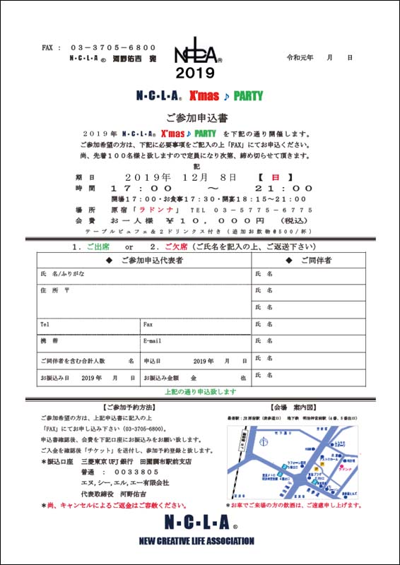お申込みは下の申込用紙に記入し、FAXにて03-3705-6800までお送りください。