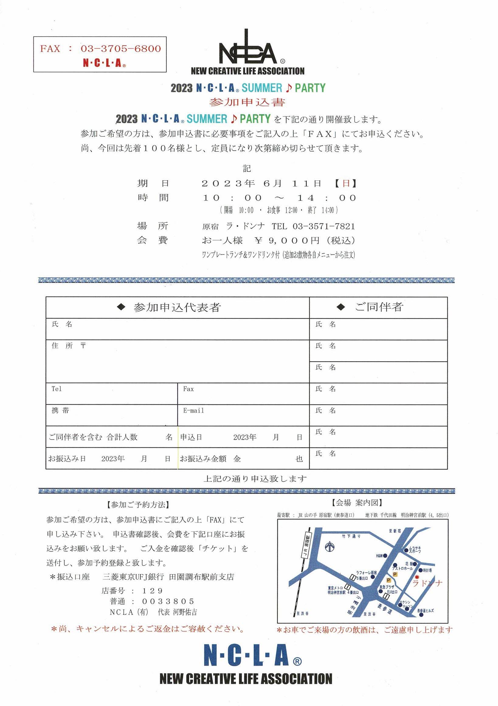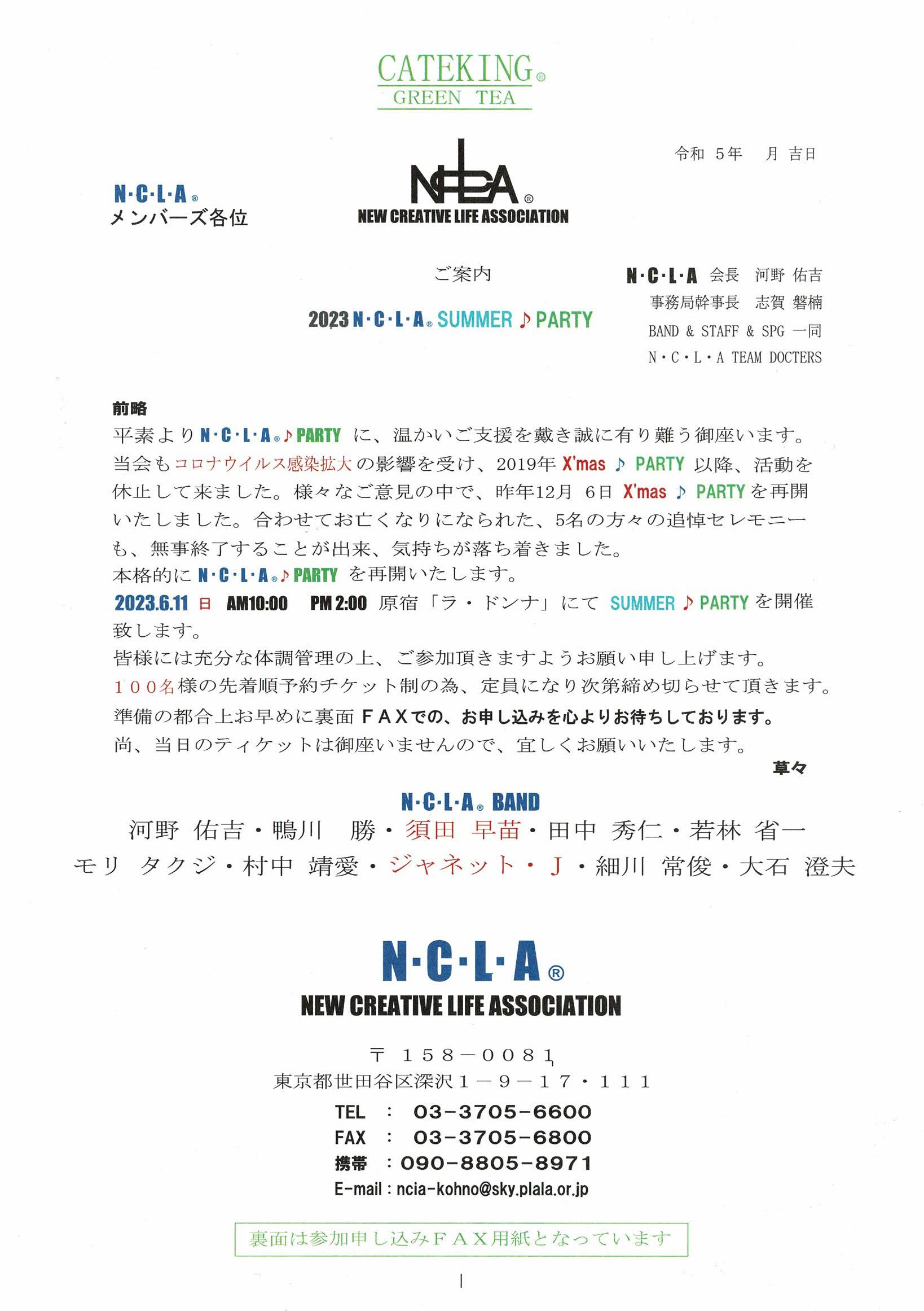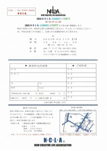 2023 N・C・L・A SUMMER ♪PARTYを下記の通り開催致します。