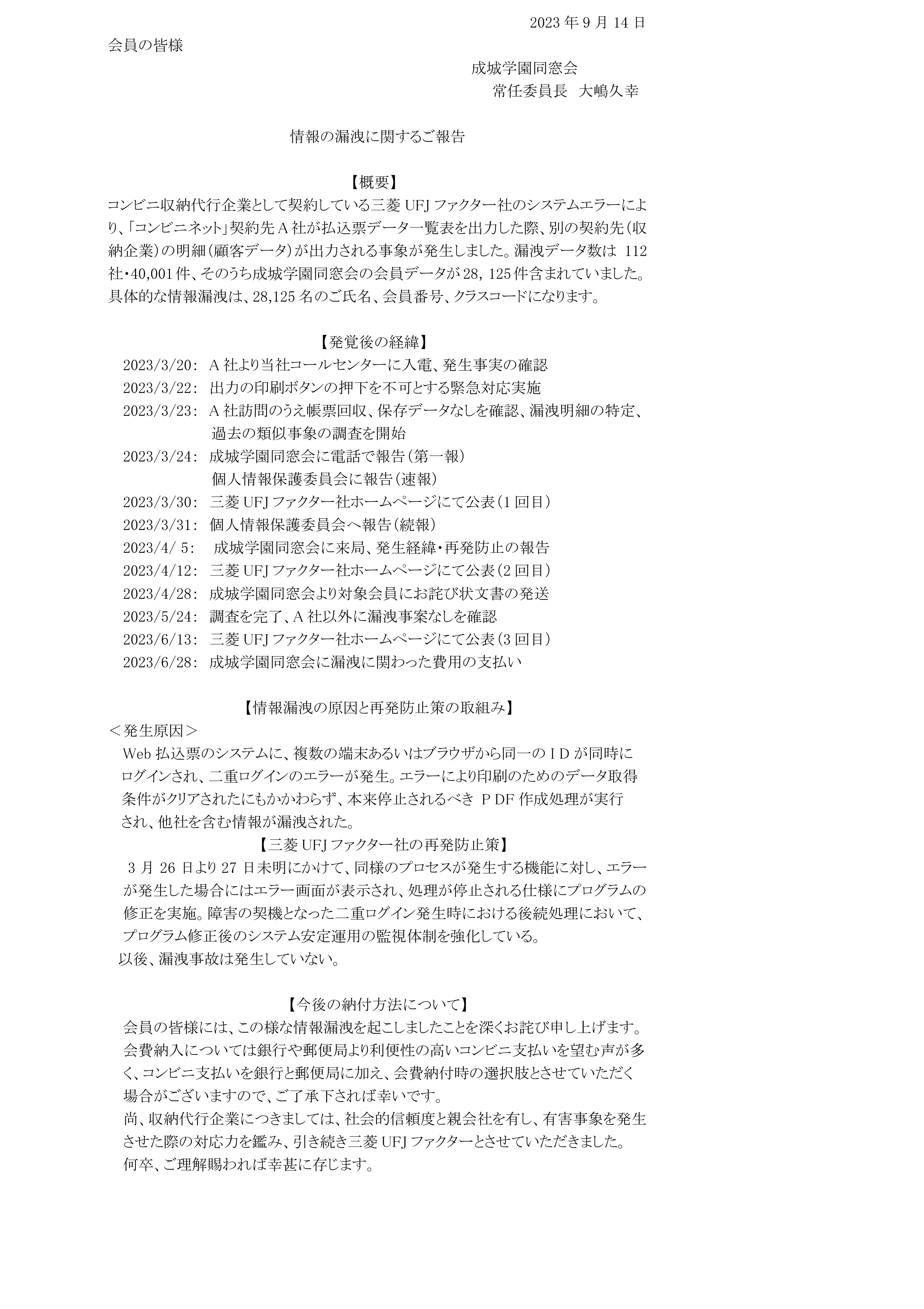 > 『同窓会だより』コンビニエンスストア払込票に関するご報告