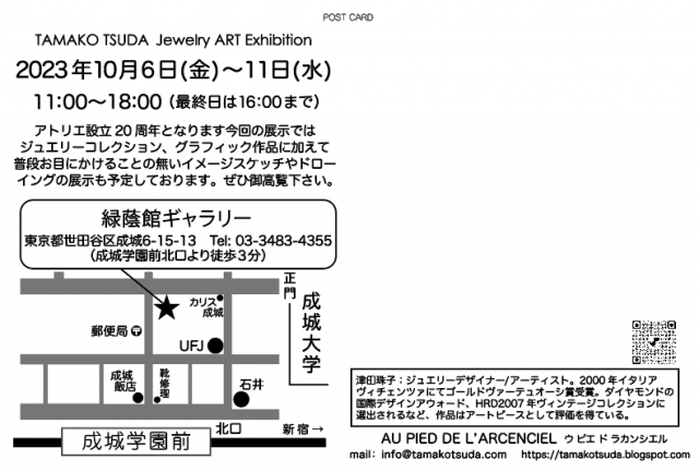アトリエ設立20周年となります今回の展示ではジュエリーコレクション、グラフィック作品に加えて普段お目にかけることの無いドローイングやイメージスケッチを展示いたします。
