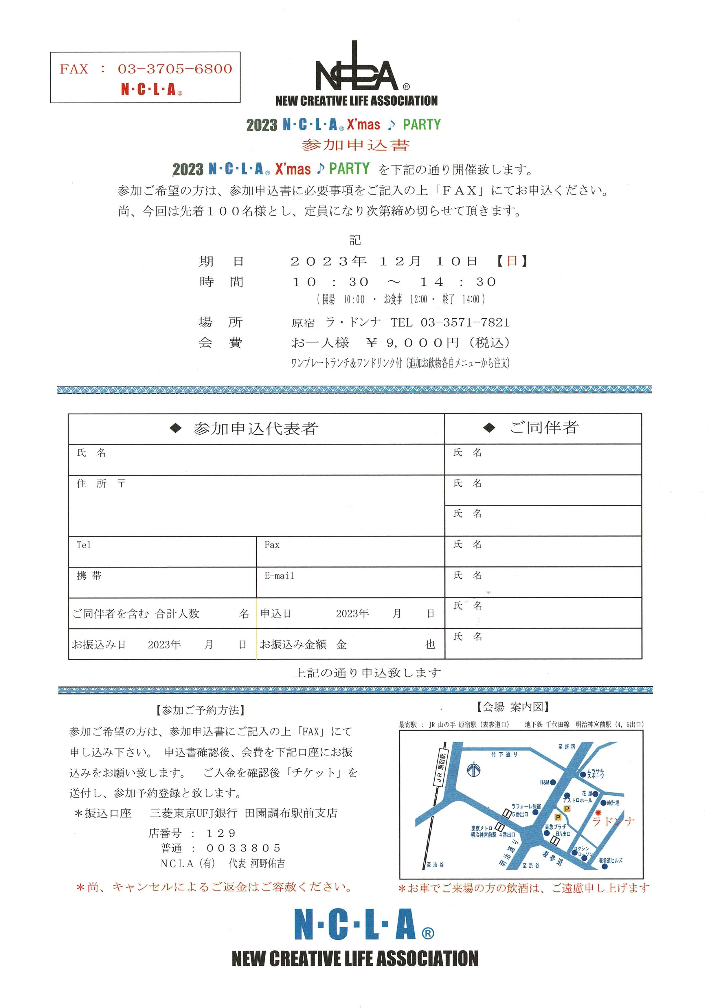 2023N・C・L・A X'mas PARTYを下記の通り開催致します。