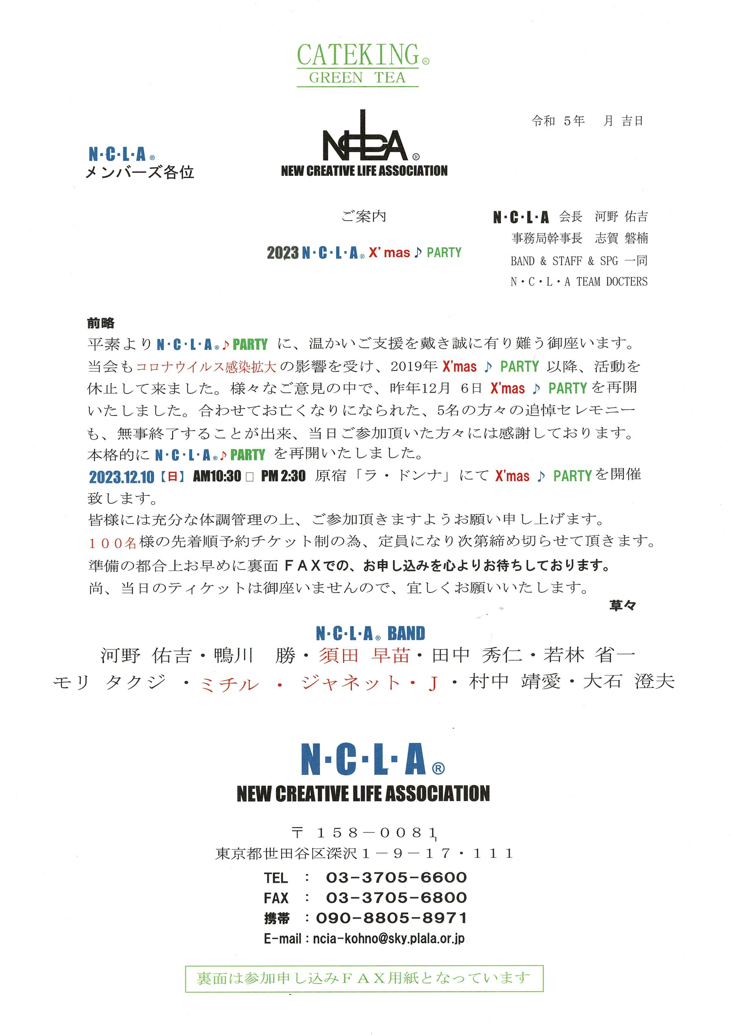 平素よりN・C・L・A PARTYに、温かいご支援を戴き誠に有り難う御座います。