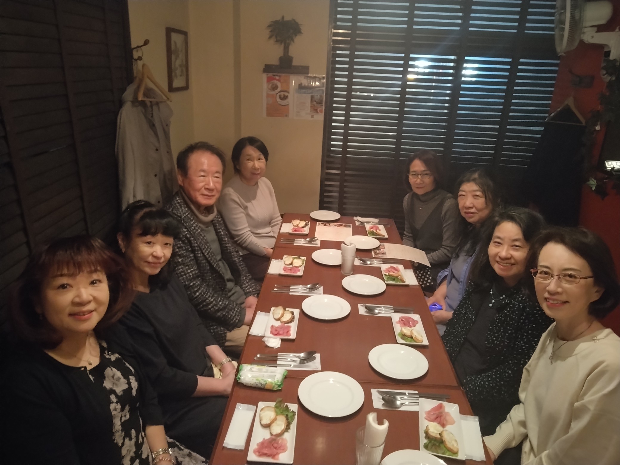 【開催報告】昭和56年短期大学卒A組クラス会 ツイート 日時:2023年11月18日(土) 会場:セットリップ(成城) 山田直巳先生を囲んで4年ぶりの開催です。 再会するとすぐに学生時代に戻れる不思議さ。 今回も時の流れを感じさせない楽しい時間になりました。 次回は2年後、皆様のご出席をお待ちしております。 真島(宇野)玲子(27文A) 2024年3月11日 カテゴリー:ゼミ会・クラス会情報/タグ: クラス会, クラス会報告