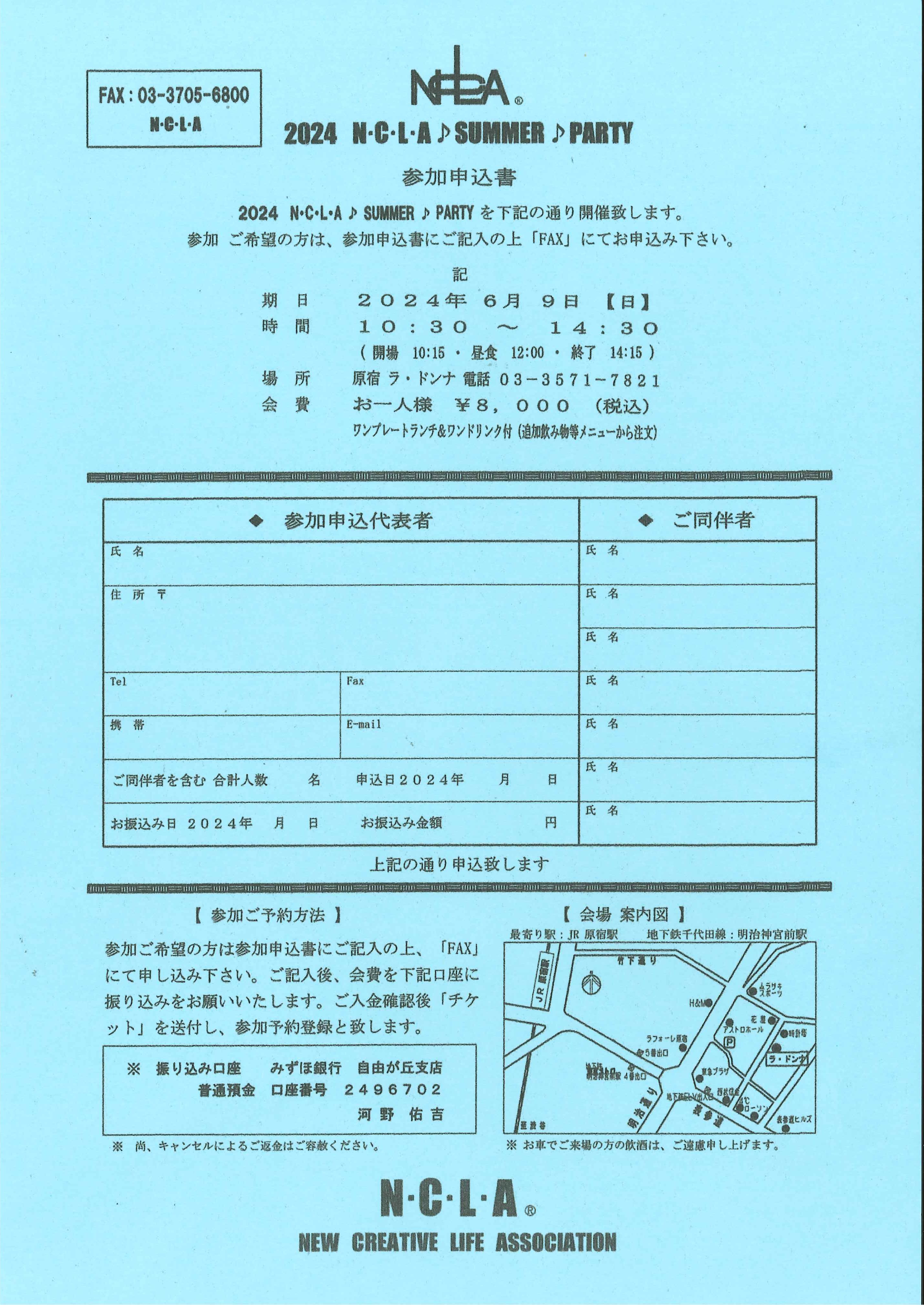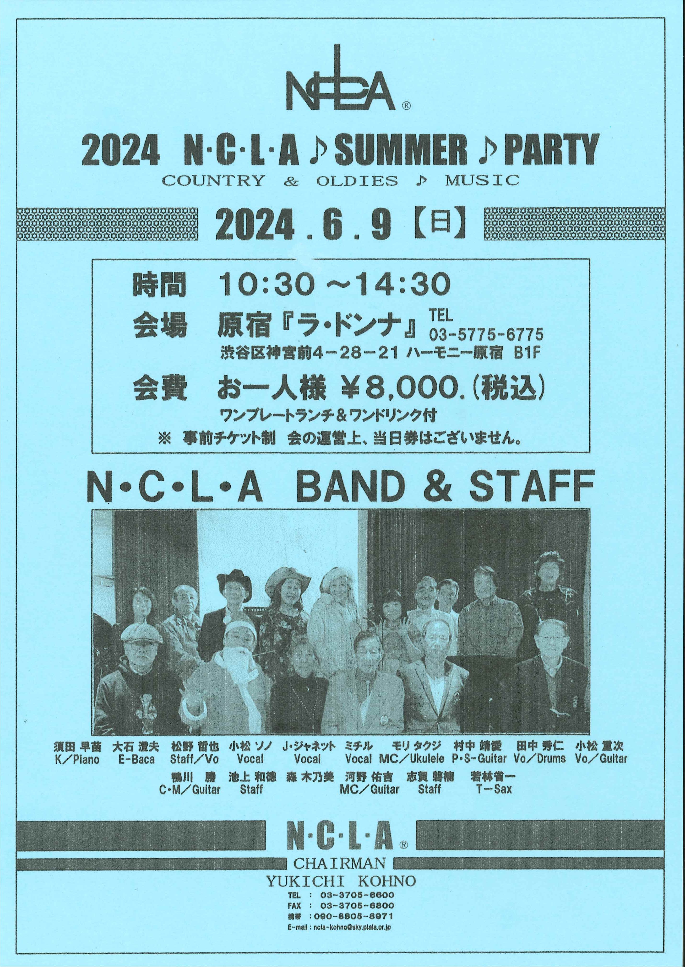 2024 N・C・L・A ♪SUMMER ♪PARTYを下記の通り開催致します。