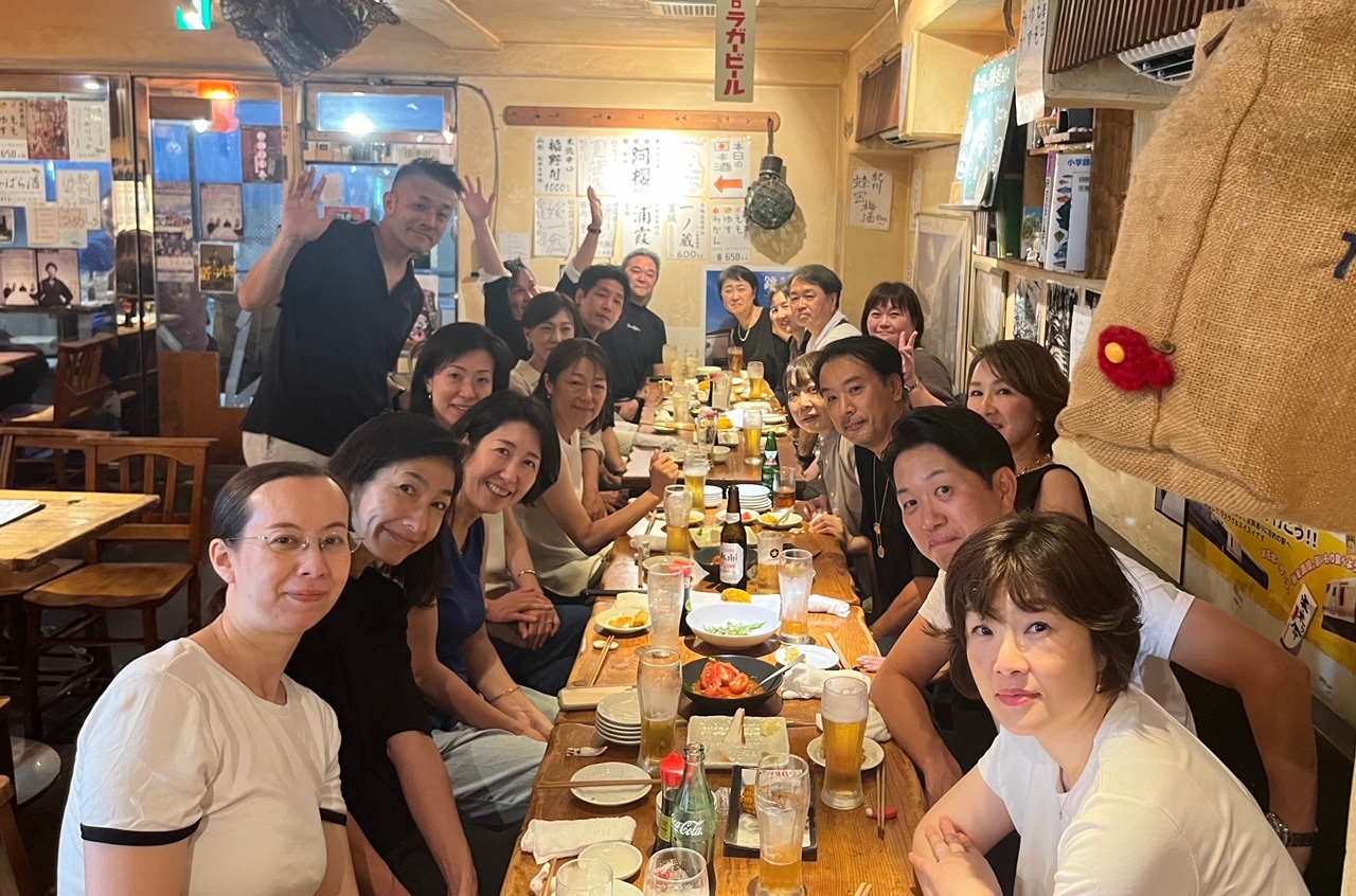 当日は19名が集まり、6月に闘病の末ご逝去された藤嶋(新沼)彩子さんを偲びながら献杯をして会を始めました。