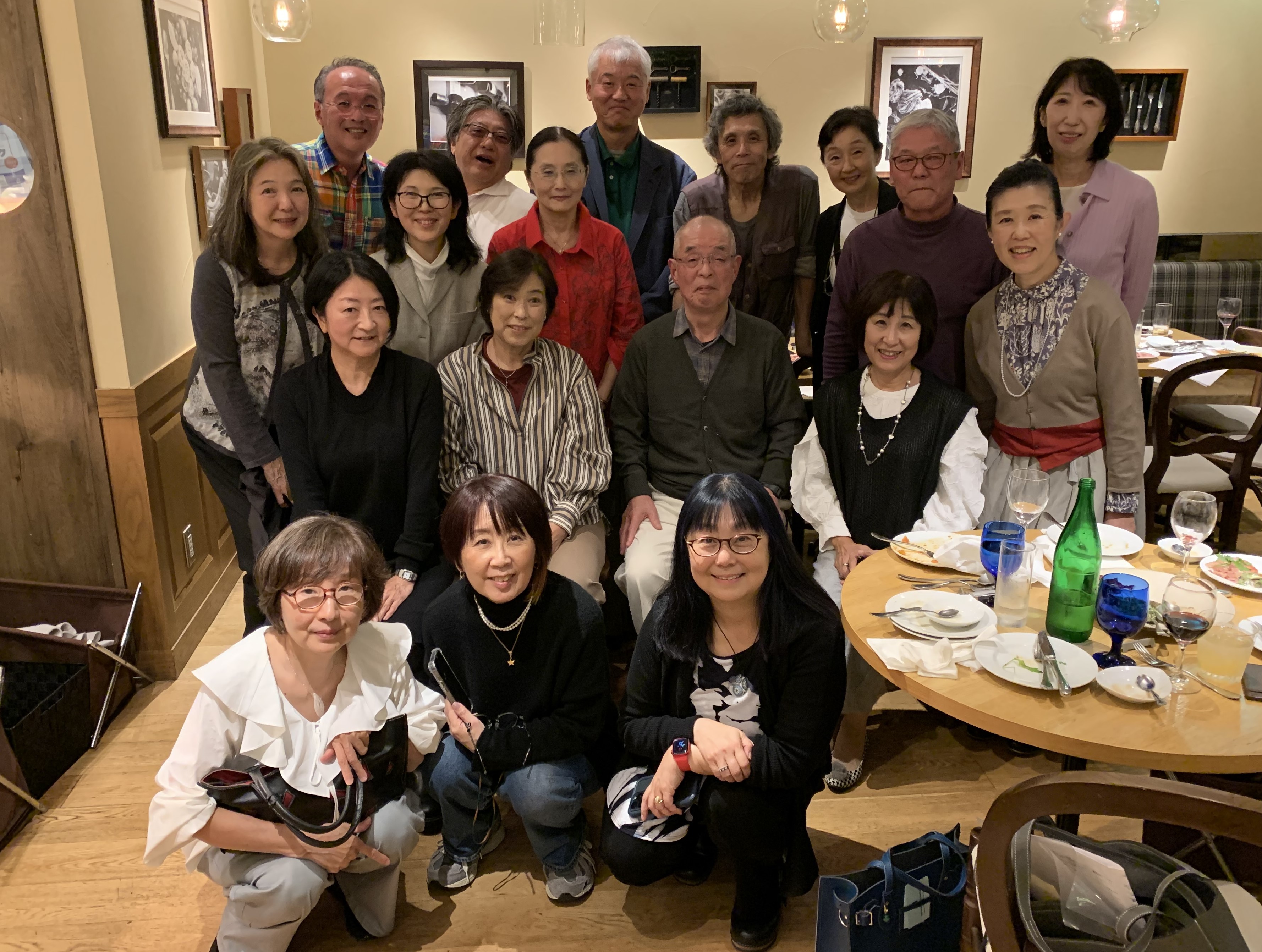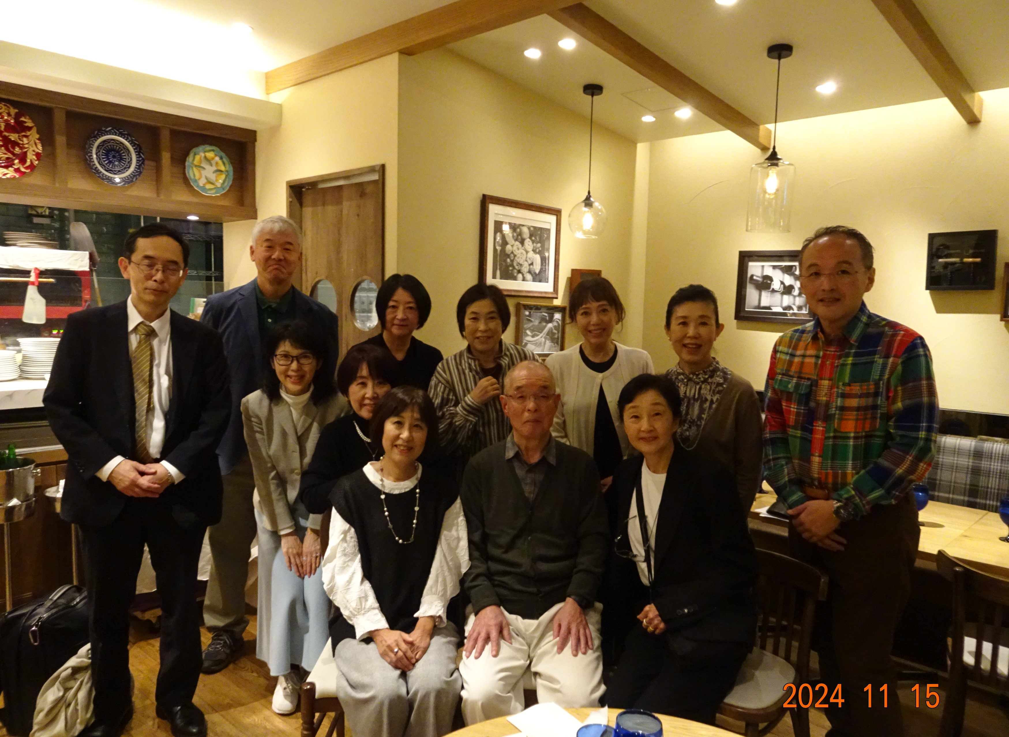 【開催報告】昭和52年中学校卒藤組クラス会 ツイート 開催日:2024年11月15日(金) 会 場:Tanto Tanto (成城コルティ) コロナ後初のクラス会に、平日にもかかわらず、遠くはアメリカや愛知県から、初参加の方、ゴルフのラウンド後参加のツワモノまで、嬉しい笑顔が集い、開上先生を囲んで、和やかで楽しい時間を過ごしました。 加治(荒木)千佳子(27文A) 2025年1月11日 カテゴリー:ゼミ会・クラス会情報/タグ: クラス会, クラス会報告