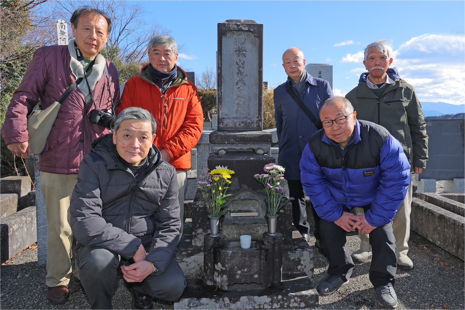 【開催報告】昭和43年初等学校卒桧組 横山昭作先生のお墓参り ツイート 開催日:2025年2月8日(土) 会 場:山梨県韮崎市舟山 一周忌のこの日、2024年ご逝去された横山先生の墓参に有志で赴きました。富士山や鳳凰三山を望む丘の上、皆で手を合わせ、思い出を語りました。写真は安田君が撮影しました。 箕浦文夫(26経D) 2025年6月26日 カテゴリー:ゼミ会・クラス会情報/タグ: クラス会, クラス会報告, 横山昭作