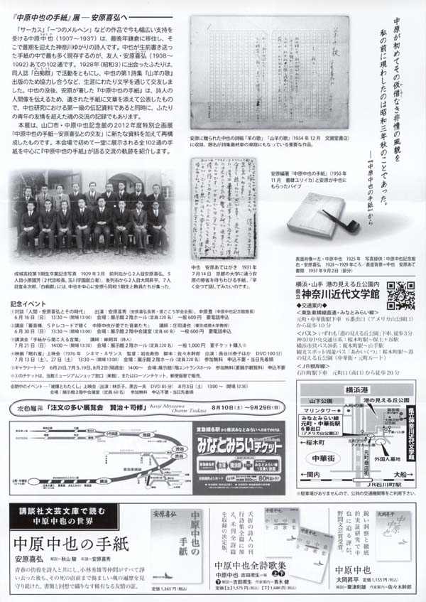本展は、2012年夏から秋にかけて山口市の中原中也記念館で開催された
