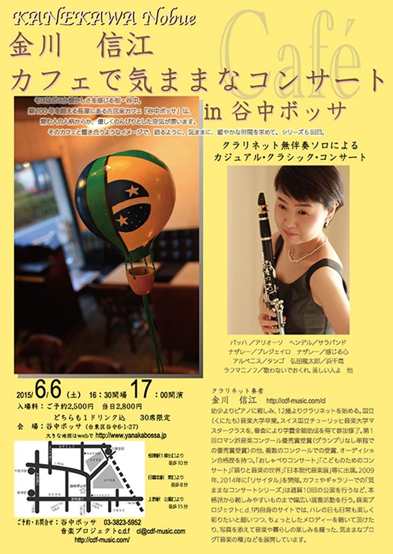 『金川信江〈クラリネット〉カフェで気ままなコンサート in 谷中ボッサ』