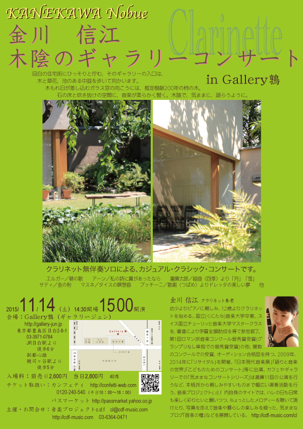 『金川信江〈クラリネット〉木陰のギャラリーコンサート in Gallery鶉』