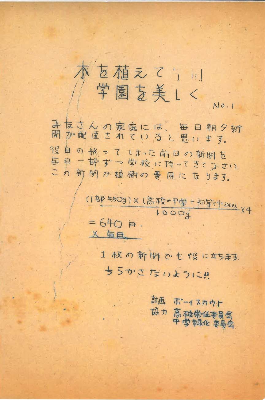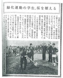 日々古新聞を持ってきた人、植樹の穴掘りをした人、絵を描いたり遊んだ人、桜並木に思い出をお持ちの学園関係者の方、どなたでもご参集ください。「自然に学び、街とともに歩む」学園第二世紀への門出と発展に思いをはせて頂く機会になれば幸いです。